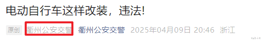 另外广东深圳盐田交警也明确,将会严查电动车改装行为,改装电动车出现交通事故,一查到底,交警将溯源追责。